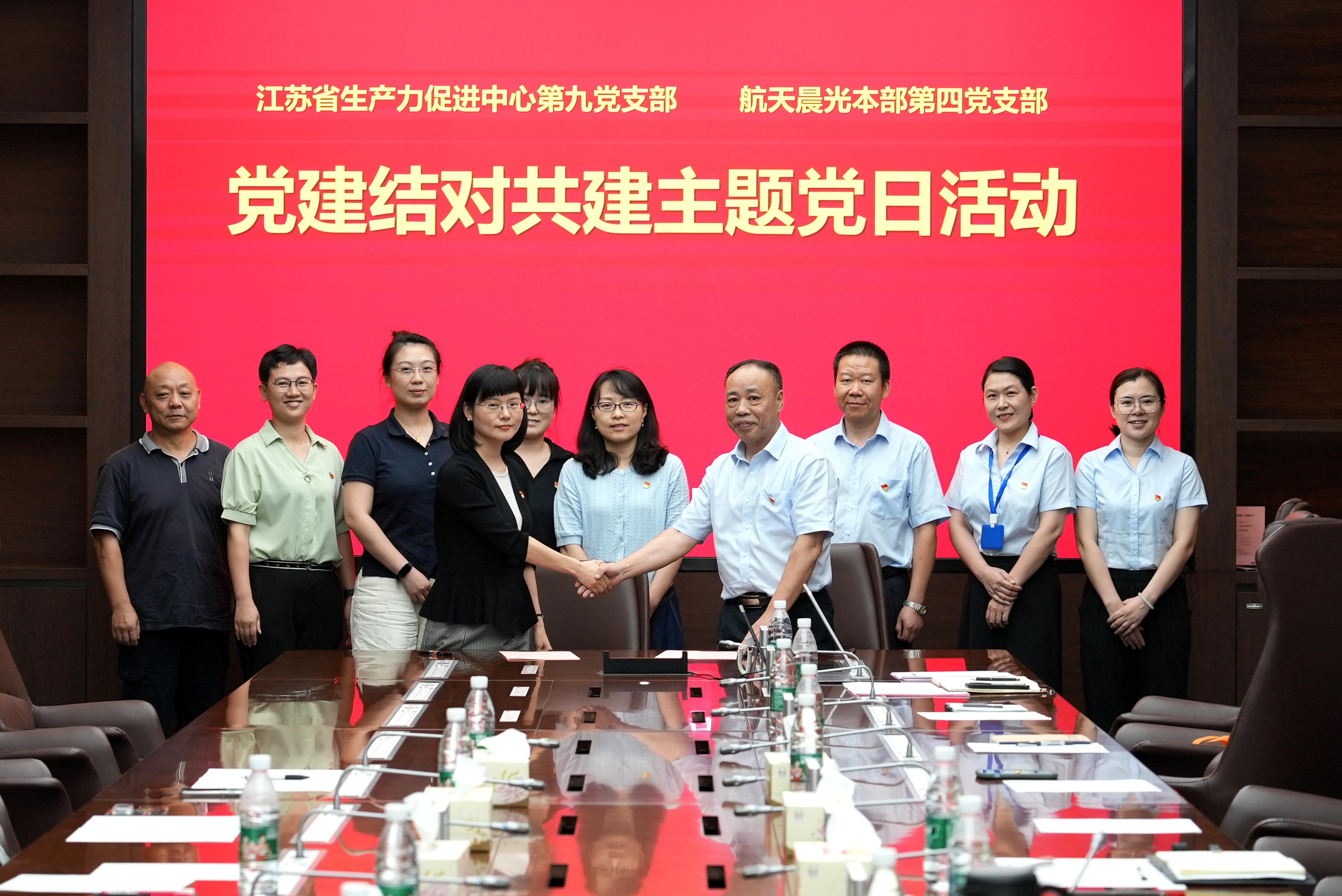 為搭建黨建與科技創(chuàng)新工作深融互促有效載體,發(fā)揮黨建引領(lǐng)作用,推動創(chuàng)新管理提質(zhì)增效,8月21日,公司本部第四黨支部與江蘇省生產(chǎn)力促進(jìn)中心第九黨支部本著“共創(chuàng)共建、共謀發(fā)展、優(yōu)勢互補(bǔ)、共同提升”的原則,以“共建組織、共抓隊(duì)伍、共享資源、共謀發(fā)展”為主題,正式簽訂黨建結(jié)對共建協(xié)議。